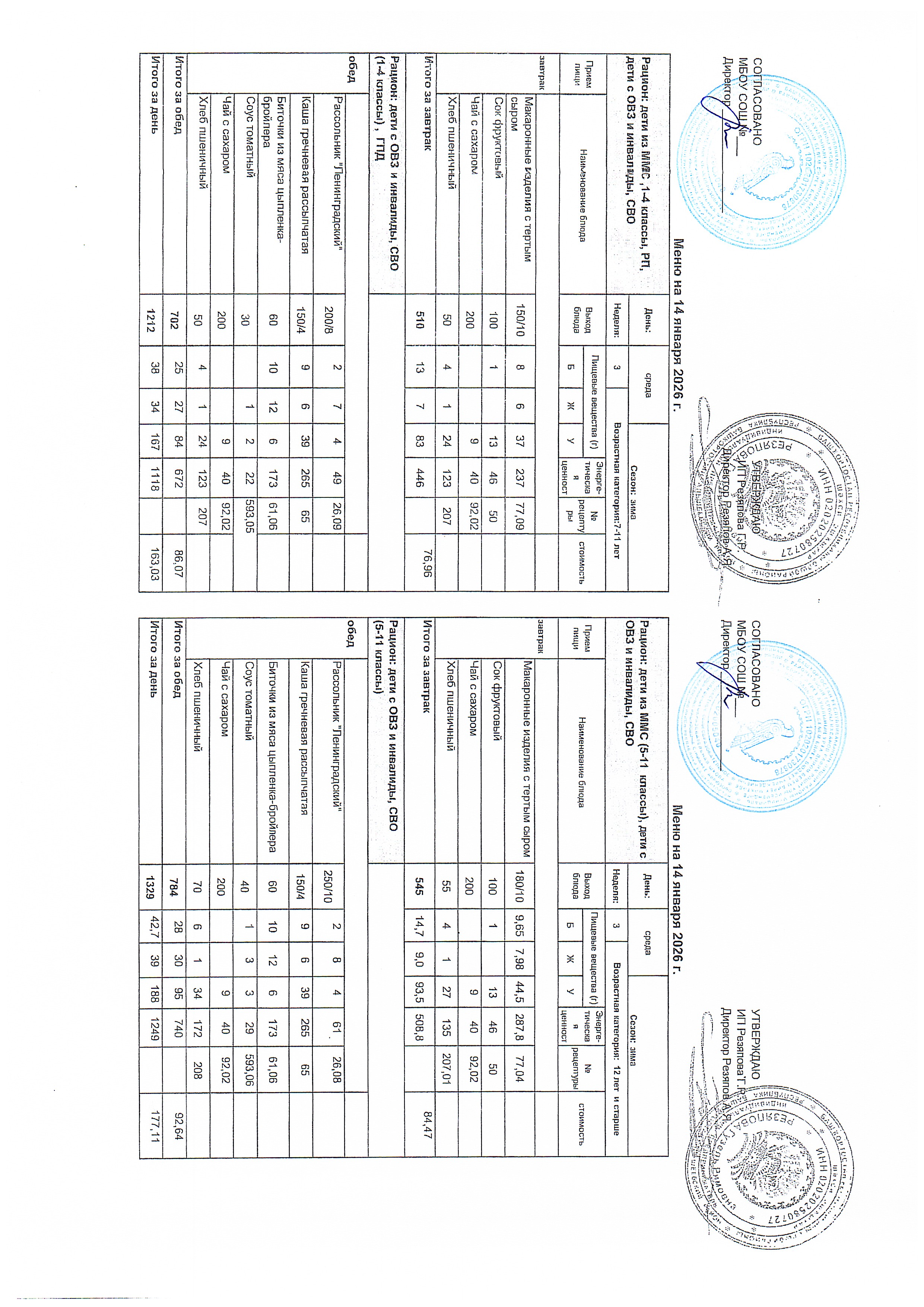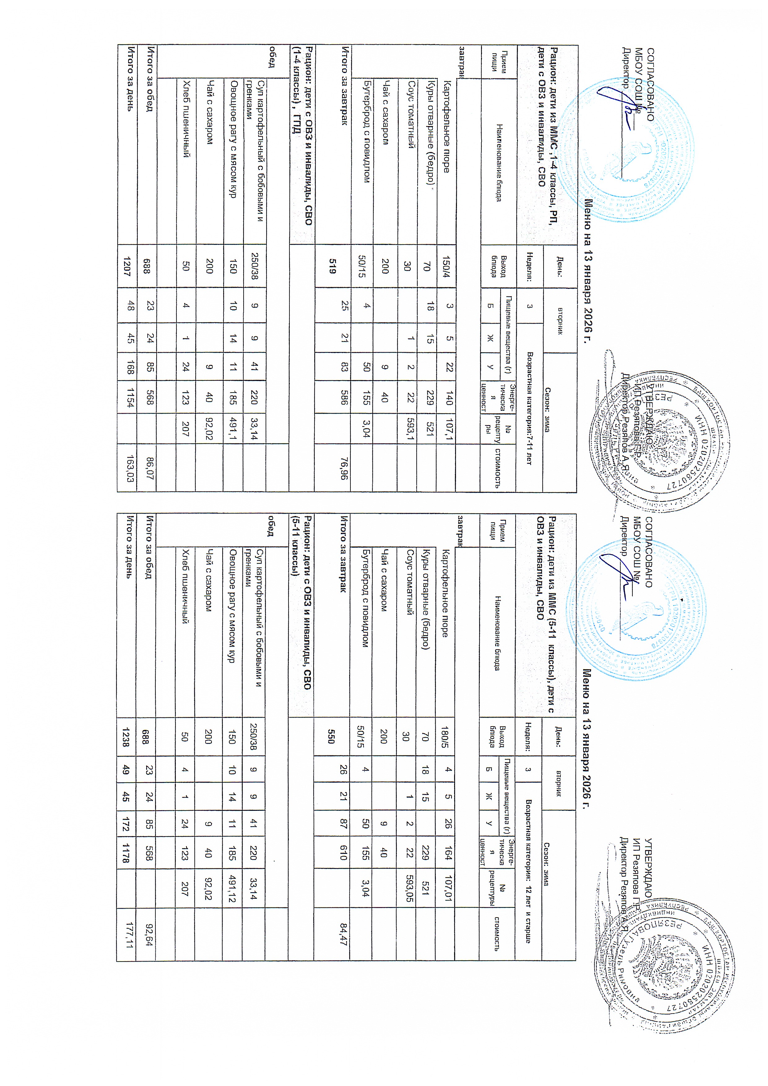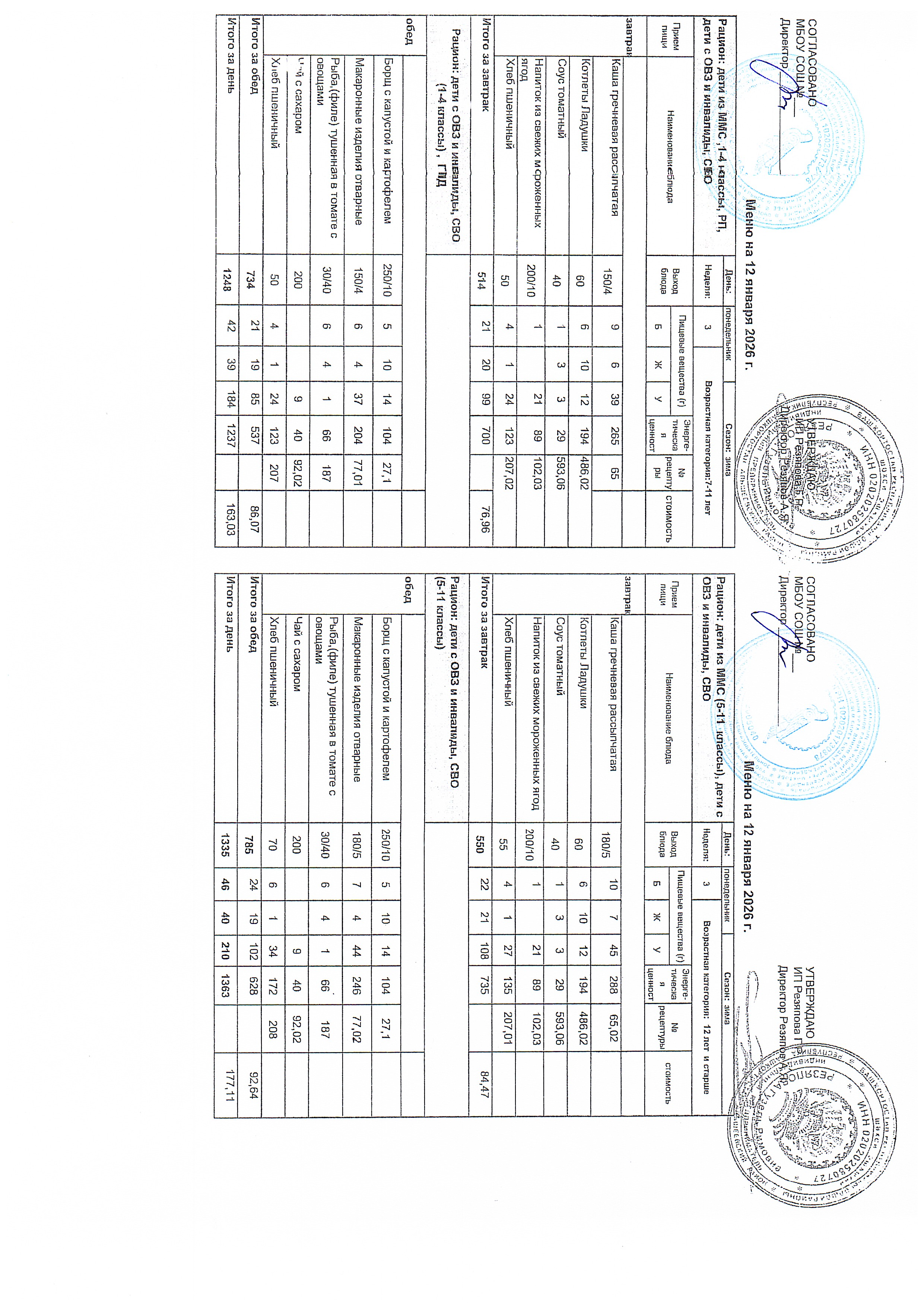 Примерное 2-х недельное меню для организации питания обучающихся с ОВЗ и инвалидов, СВО с 7 до 11 лет и 12 лет и старше.pdf