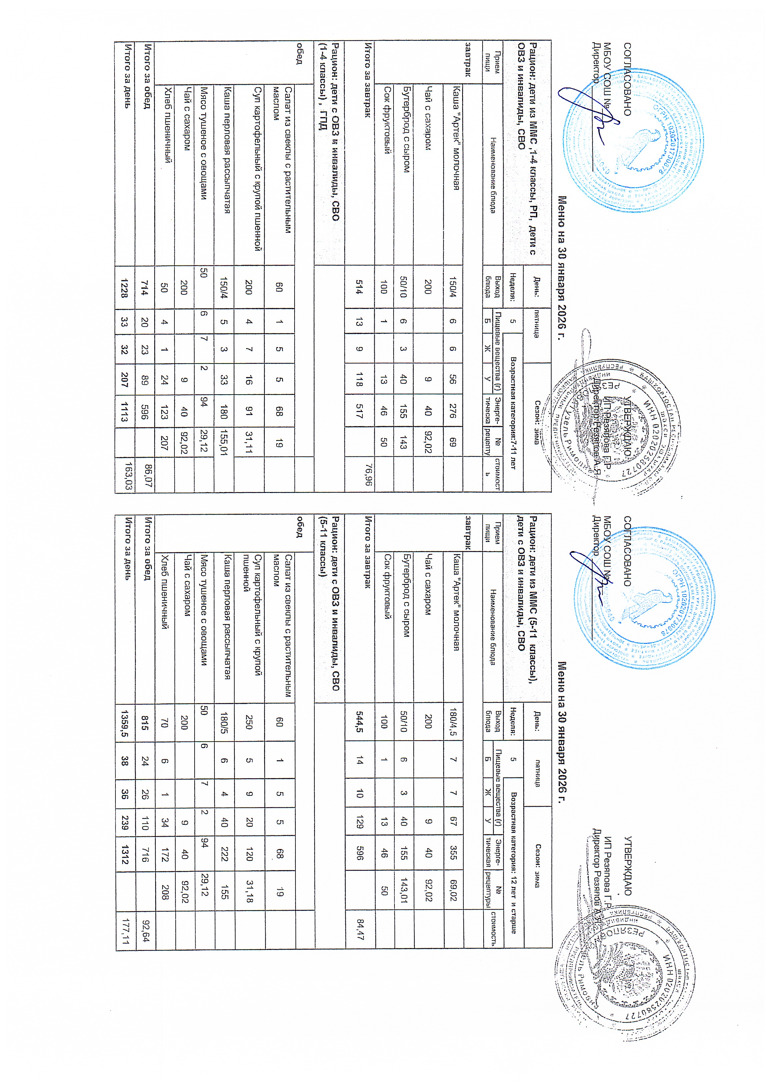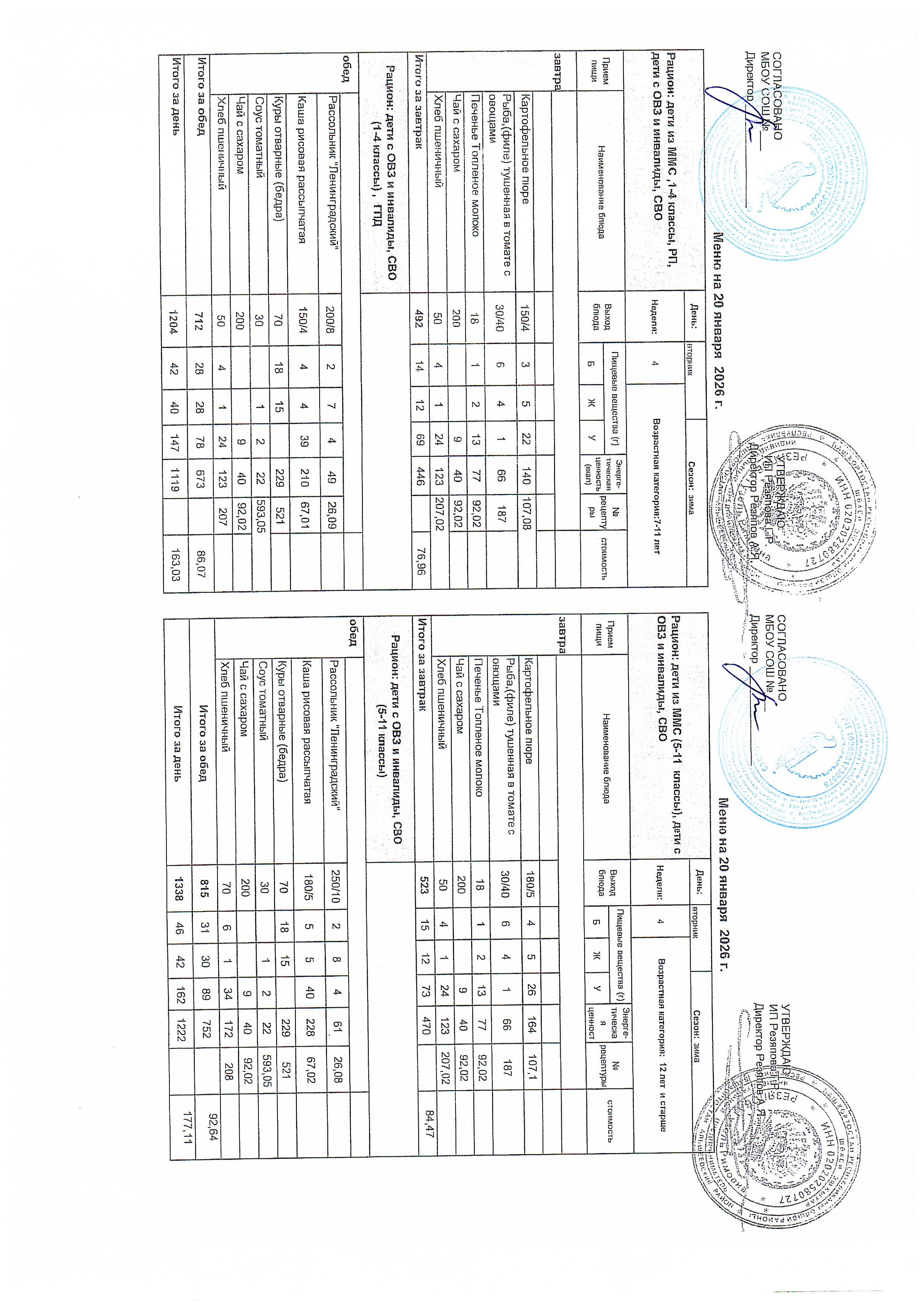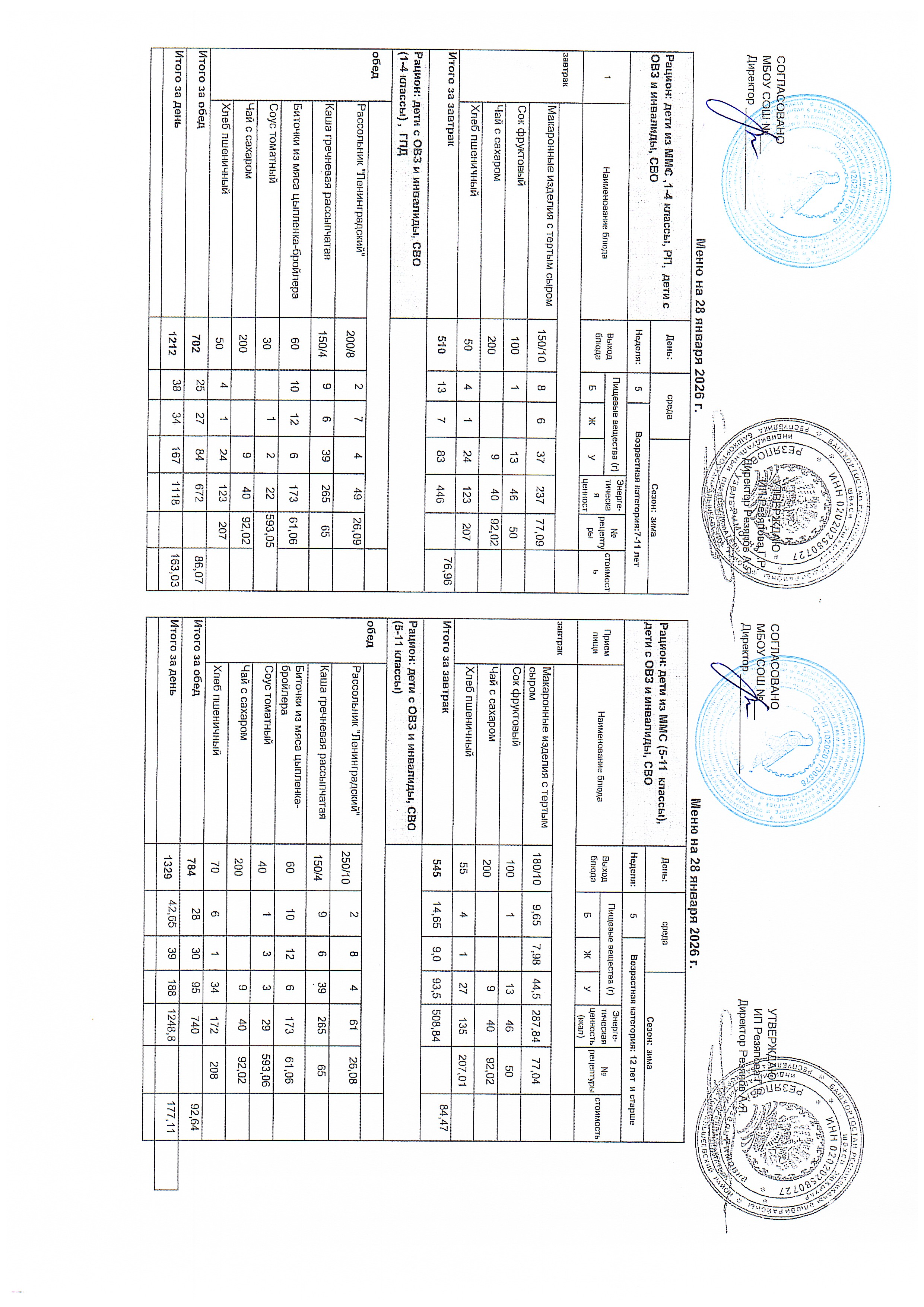 Примерное 2-х недельное меню для организации питания обучающихся с ОВЗ и инвалидов, СВО с 7 до 11 лет и 12 лет и старше.pdf