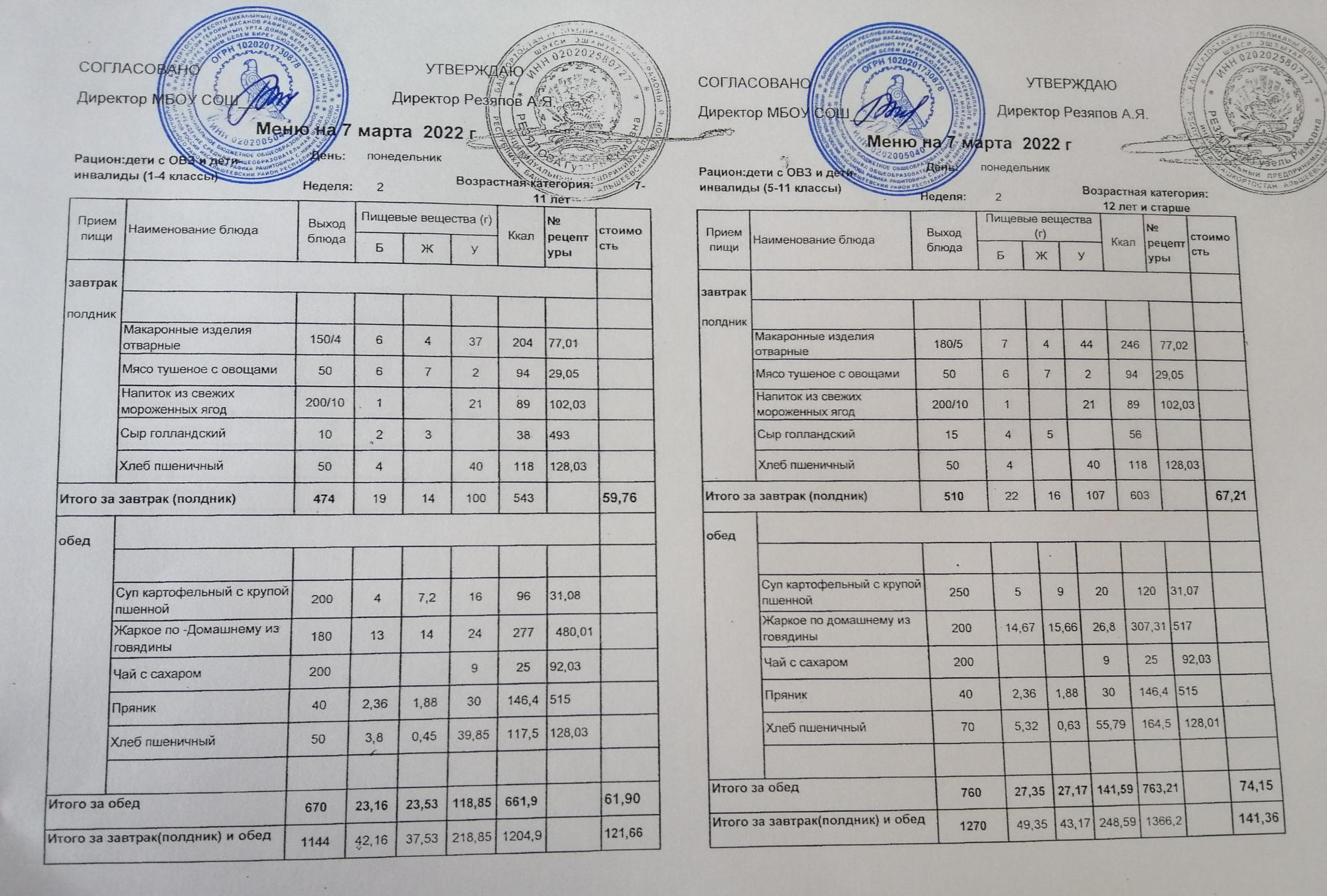Примерное 2-х недельное меню для организации питания обучающихся с ОВЗ и инвалидов, СВО с 7 до 11 лет и 12 лет и старше.pdf