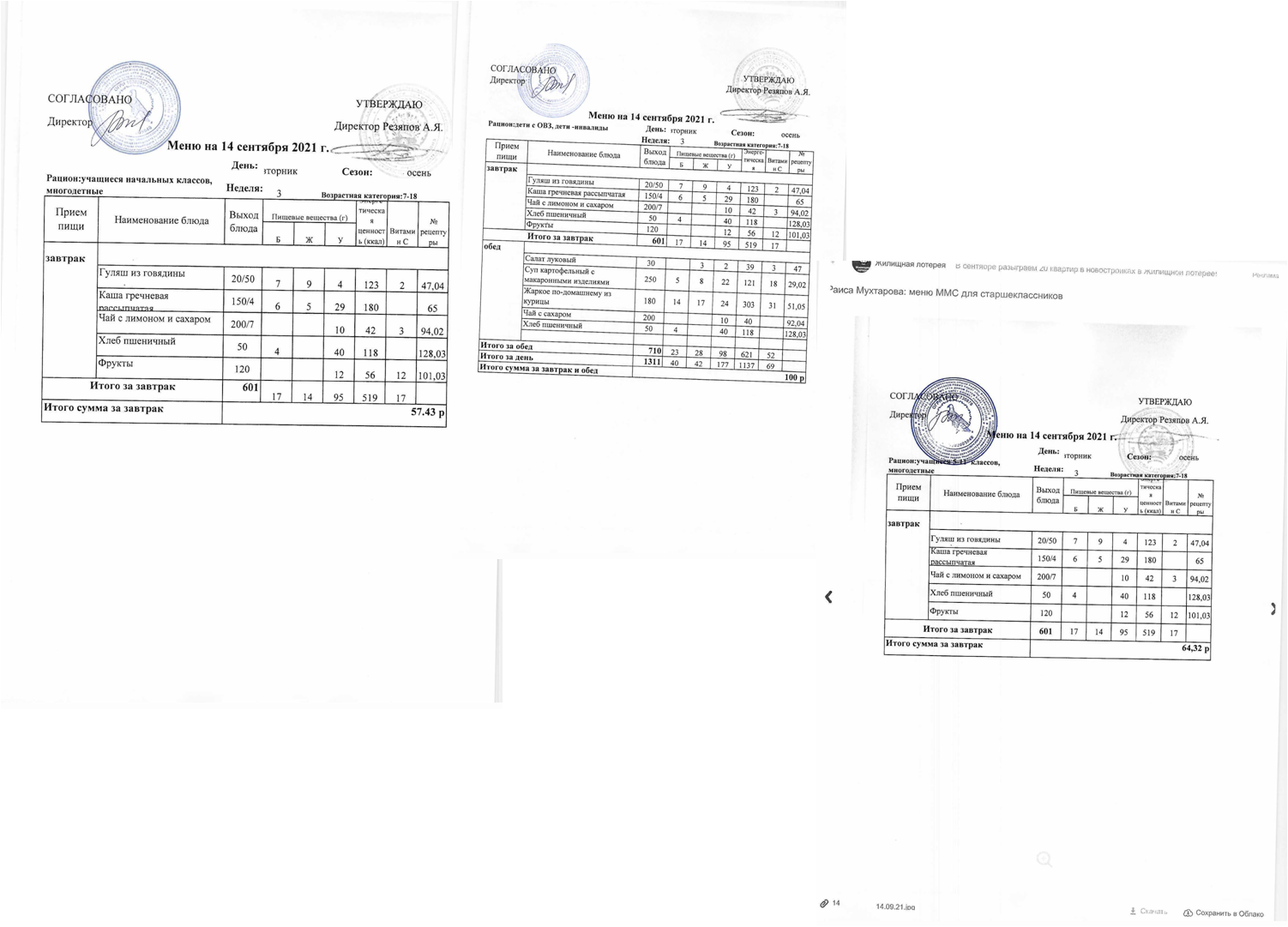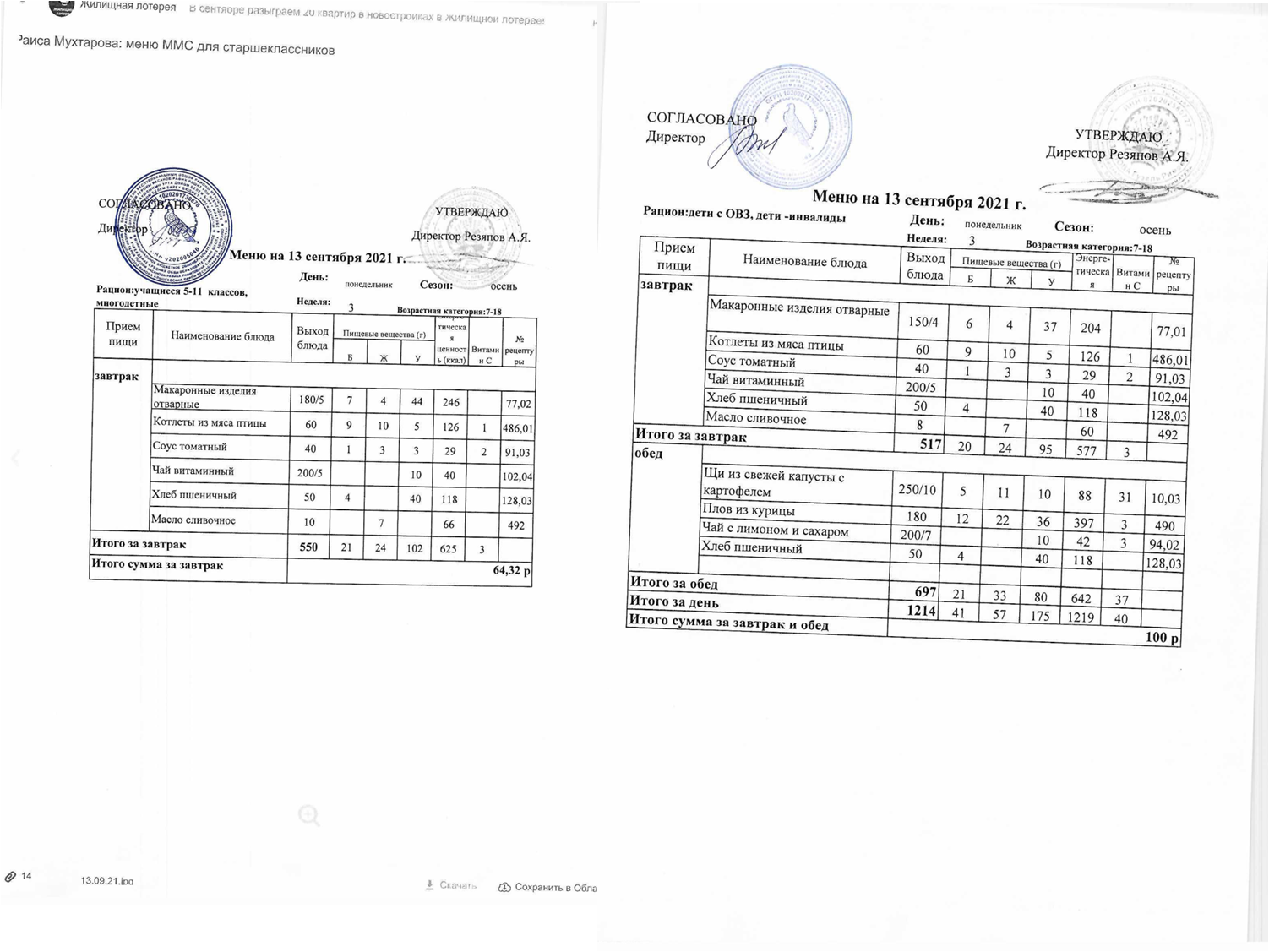 Примерное 2-х недельное меню для организации питания обучающихся с ОВЗ и инвалидов, СВО с 7 до 11 лет и 12 лет и старше.pdf