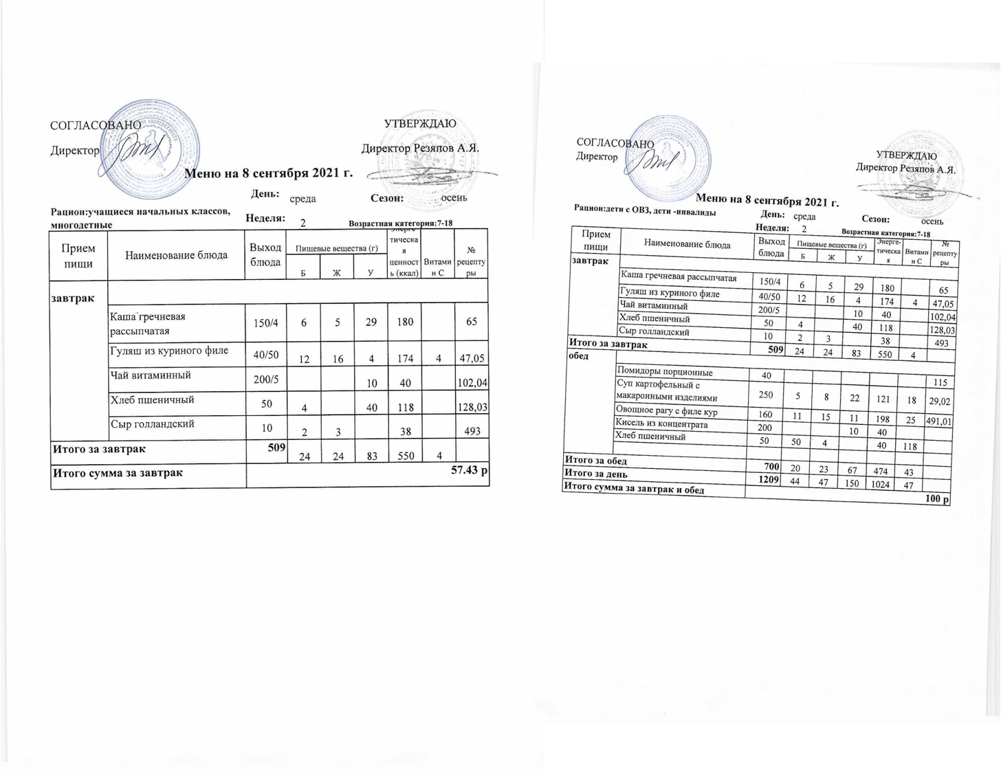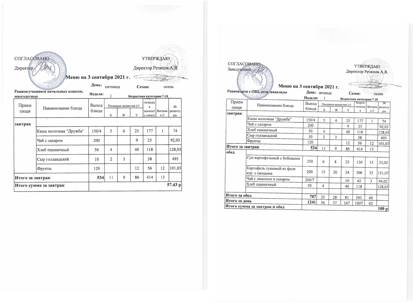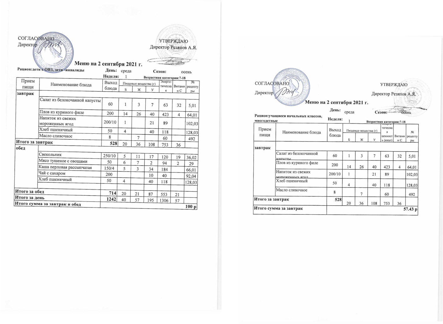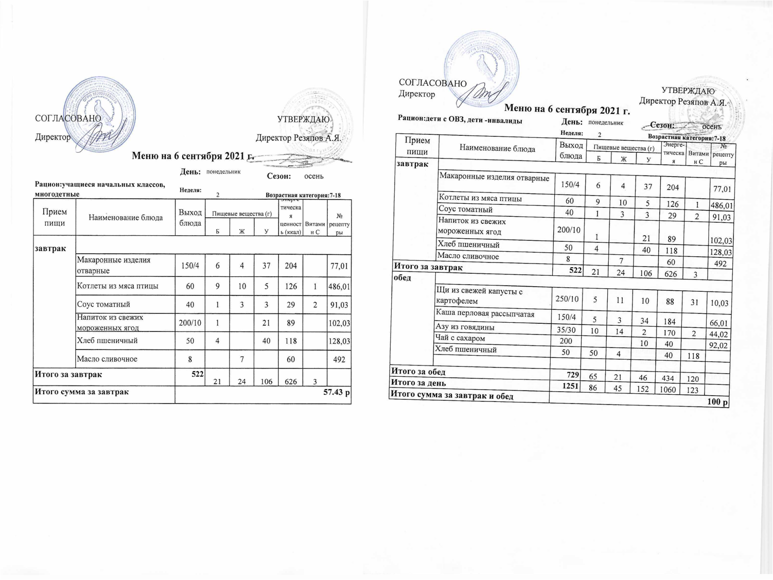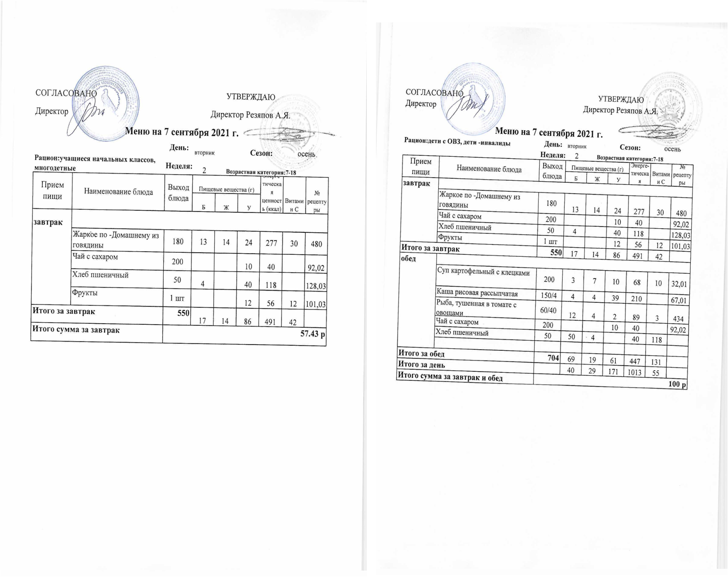 Примерное 2-х недельное меню для организации питания обучающихся с ОВЗ и инвалидов, СВО с 7 до 11 лет и 12 лет и старше.pdf